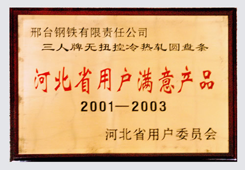 三人牌無扭控冷熱軋圓盤條被評為河北省用戶滿意產(chǎn)品