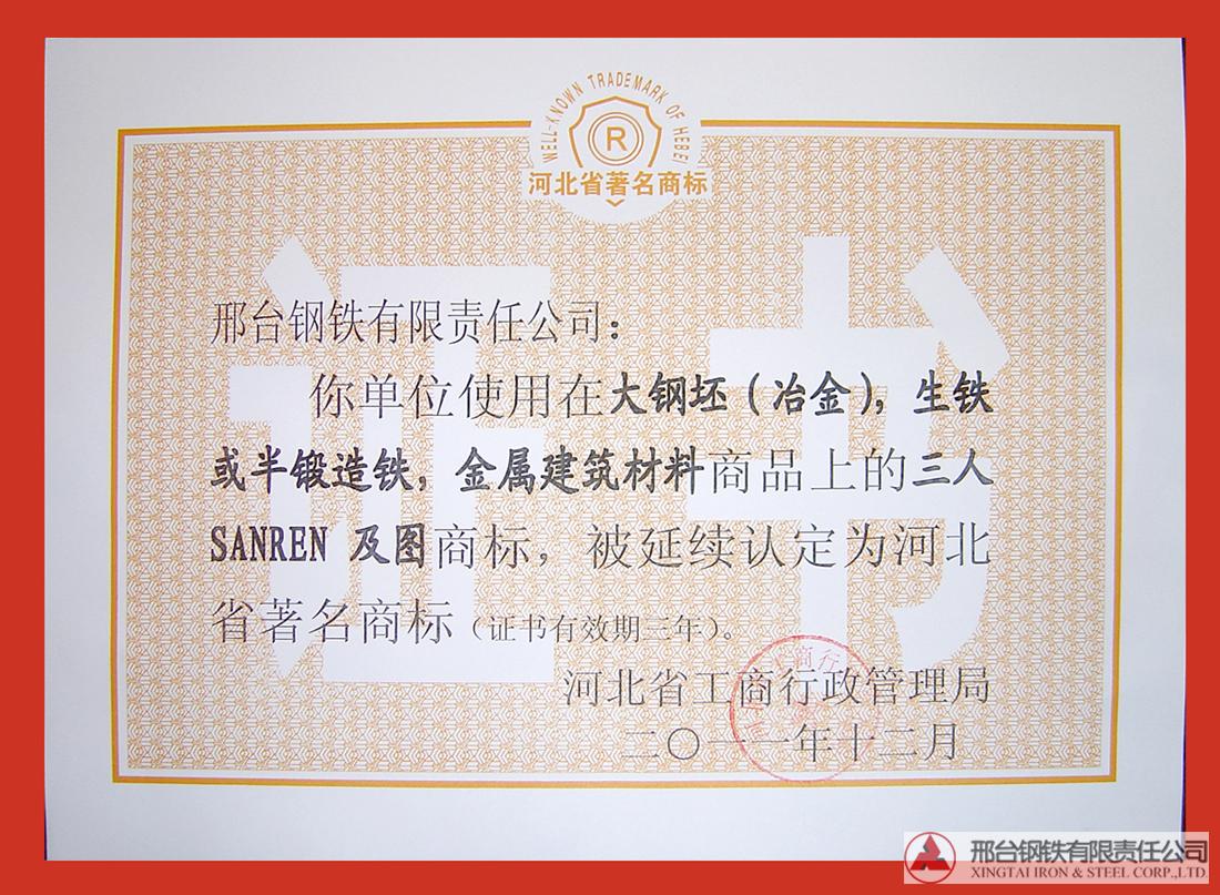 “三人”注冊商標被延續(xù)認定為河北省著名商標