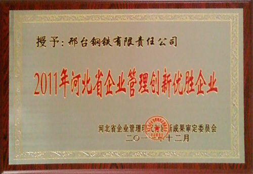 2012年4月25日,BSI公司(中國)在上海舉行了首次“卓越質量管理獎”頒獎儀式,并授予邢臺鋼鐵有限責任公司“卓越質量管理獎”稱號,同時獲獎的還有寶鋼等其他10幾家企業(yè)。
