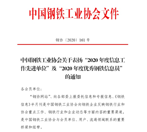 邢鋼被中鋼協(xié)評(píng)為“2020年度信息工作先進(jìn)單位”