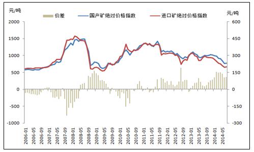 圖5:進(jìn)口礦和國產(chǎn)礦絕對(duì)價(jià)格指數(shù)