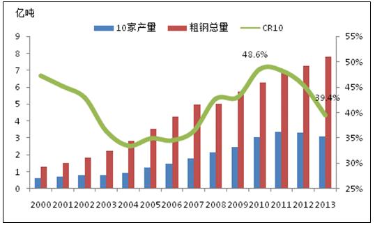 產(chǎn)業(yè)集中度過低,首先會(huì)加劇企業(yè)間的無序競爭,減弱了企業(yè)在價(jià)格上的談判能力,導(dǎo)致盈利能力減弱;其次,會(huì)拉低中國鋼材的整體品質(zhì)和檔次,一旦產(chǎn)業(yè)集中度提高了,企業(yè)會(huì)有更多的精力和資金來升級(jí)加工裝備,研究出品質(zhì)更好的鋼材,提高中國在國際貿(mào)易中的競爭力;第三,生產(chǎn)的過度分散會(huì)造成資源的極大浪費(fèi),帶來更多的環(huán)境污染,進(jìn)一步降低中國的產(chǎn)能利用能力。所以為了鋼鐵行業(yè)的健康發(fā)展,我們必須要進(jìn)行產(chǎn)業(yè)結(jié)構(gòu)的整合,鋼鐵企業(yè)重組勢在必行。
