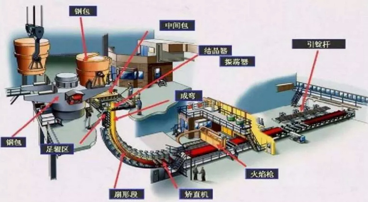 連鑄:連續(xù)鑄鋼(英文Continuous Steel Casting)的簡(jiǎn)稱,可實(shí)現(xiàn)不間斷連續(xù)生產(chǎn)。與模鑄相比,連鑄技術(shù)具有提高金屬收得率、改善勞動(dòng)環(huán)境、自動(dòng)化程度高、鑄坯質(zhì)量好等顯著優(yōu)勢(shì),現(xiàn)目前大多數(shù)鋼廠都采用連鑄澆注,可生產(chǎn)方坯、圓坯、板坯等。