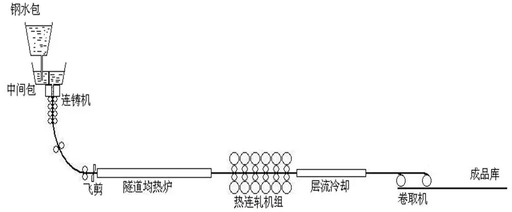 注:從左至右分別為:連鑄機(jī)、均熱爐、熱連軋機(jī)組、層流冷卻。