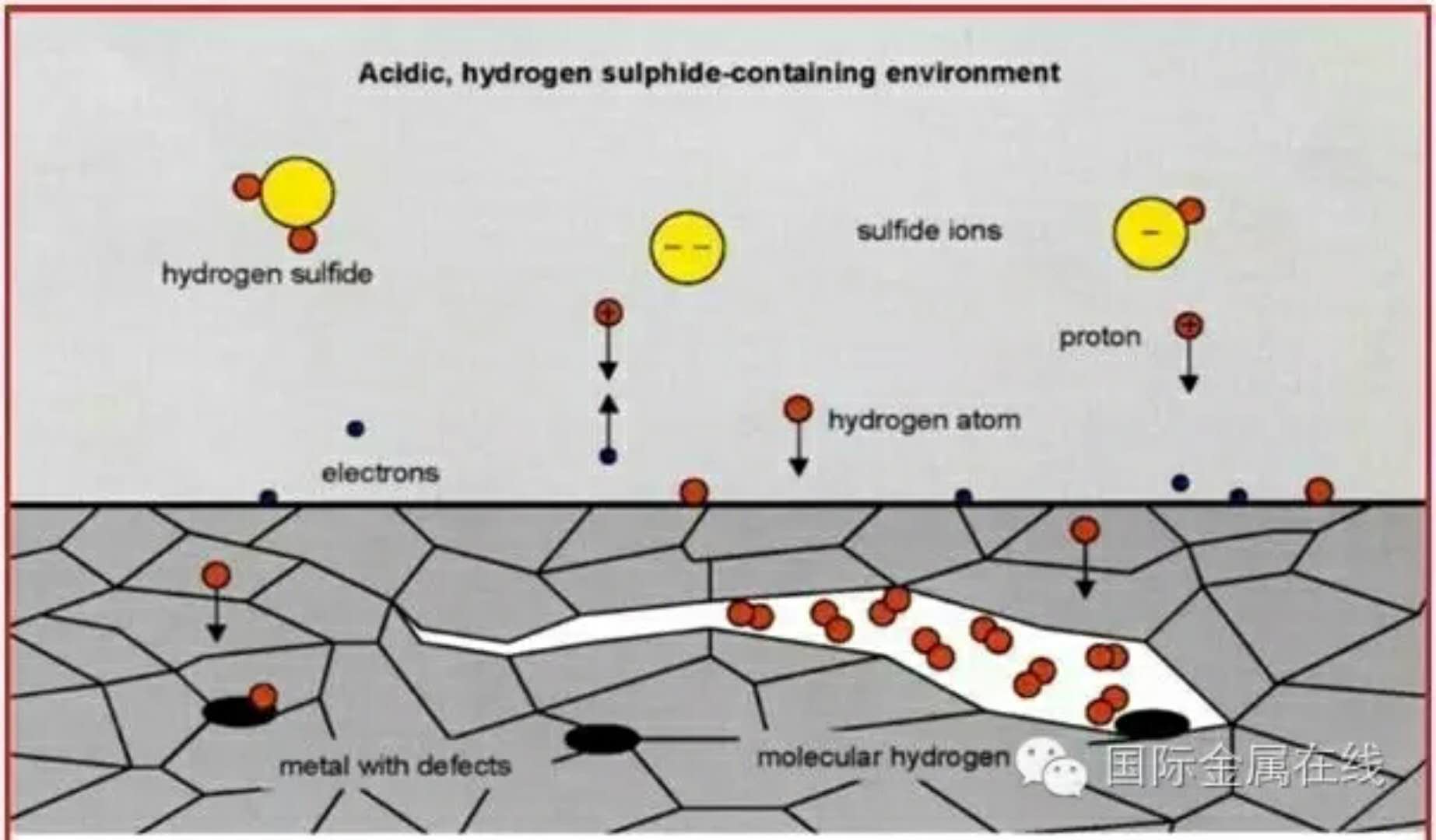 如鋼在含氫量較高的環(huán)境中,如水、酸、氫氣中時,氫通過吸附在鋼鐵表而擴散,造成鋼變脆。同時氫分壓對氫裂紋擴展速度有明顯的影響,提高氫氣壓力會增加氫脆敏感性。