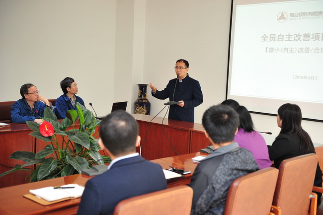 公司全員自主改善精益項目顧問楊智公司聶昌浩作了輔導(dǎo)講話和業(yè)務(wù)培訓(xùn)。重點指出了邢鋼做好全員自主改善項目的重要意義;強調(diào)自主改善工作要不斷優(yōu)化,長期堅持;各級管理者要正確引導(dǎo),把無序的工作變?yōu)橛行虻母纳?;各級評審委員會在做好評審工作的基礎(chǔ)上,要重點做好改善方向的引導(dǎo)。