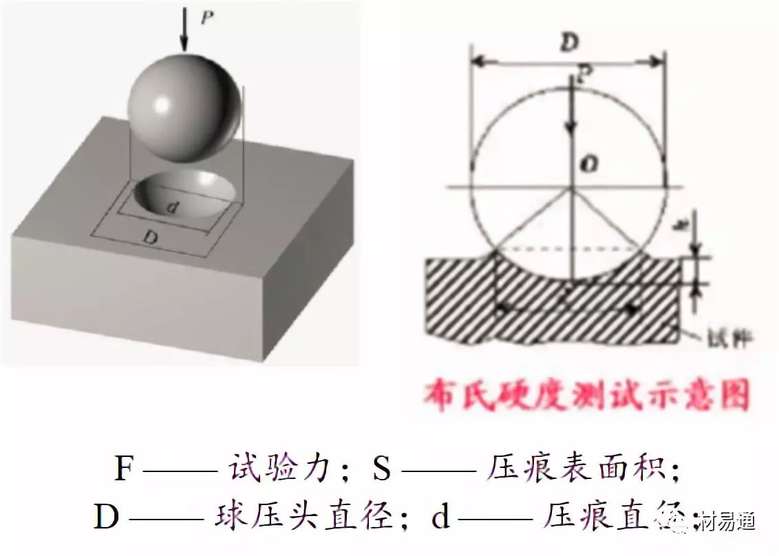 原理:用一定直徑的壓頭(球體),以相應(yīng)試驗力壓入待測表面,保持規(guī)定時間卸載后,測量材料表面壓痕直徑,以此計算出硬度值。