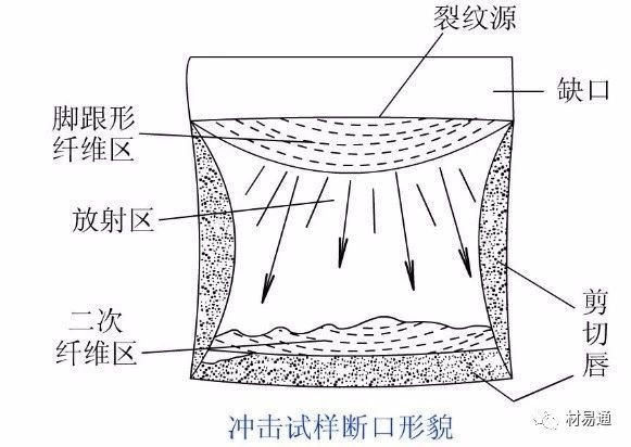 韌性材料沖擊試樣斷口示意圖