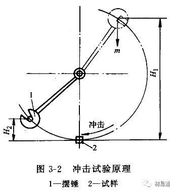 釋放擺錘沖斷試樣,擺錘的剩余能量為mgH2,則擺錘沖斷試樣失去的位能為mgH1-mgH2,這就是試樣變形和斷裂所消耗的功,稱為沖擊吸收功,以AK表示,單位為J。