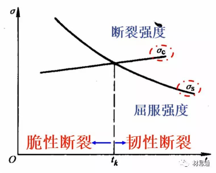 低溫脆性是材料屈服強度隨著溫度的降低急劇增加的結(jié)果;見右圖,屈服點隨著溫度的下降而升高,但材料的斷裂強度隨著溫度的變化很??;兩線交點對應的溫度就是tk。