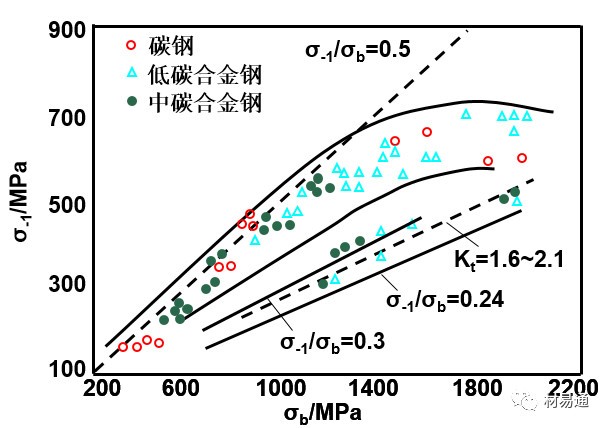 鋼的疲勞極限σ-1與抗拉強(qiáng)度σb的關(guān)系