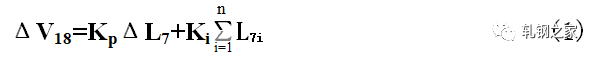 當(dāng)活套一旦形成以后,活套的實(shí)際高度立即由活套掃描器測(cè)得的值經(jīng)過(guò)PI調(diào)節(jié)器,輸出一個(gè)控制信號(hào),通過(guò)控制上游軋機(jī),使活套大小得到調(diào)節(jié),使活套保持在設(shè)定的高度范圍。速度調(diào)節(jié)量是按逆流調(diào)速的方法,按同樣比例對(duì)軋機(jī)的工作速度進(jìn)行級(jí)聯(lián)調(diào)節(jié)。假如活套L7出現(xiàn)高度差為ΔL7,則V18機(jī)架的速度調(diào)節(jié)是: