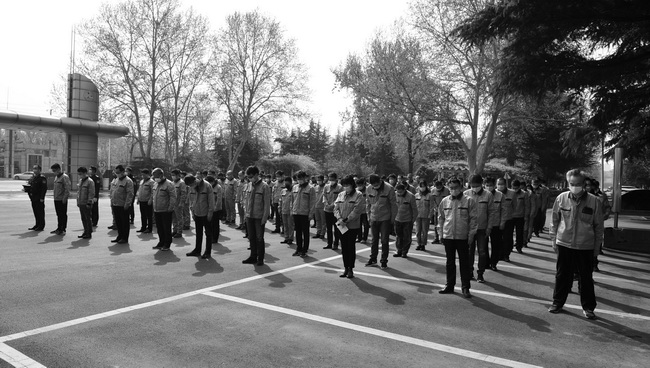2020年4月4日上午10時(shí),公司在辦公樓外廣場(chǎng)舉行哀悼儀式,下半旗,火車和汽車鳴笛三分鐘,對(duì)抗擊新冠肺炎疫情斗爭犧牲的烈士和逝世同胞表示深切哀悼!