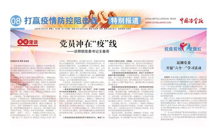 邢鋼黨委書記王春雨在接受采訪時表示,邢鋼黨委認(rèn)真貫徹落實黨中央和河北省邢臺市橋西區(qū)關(guān)于疫情防控工作的安排部署,切實把思想和行動統(tǒng)一到黨中央決策部署上來,號召黨員積極參與,主動擔(dān)當(dāng)作為,奮力攻堅克難。