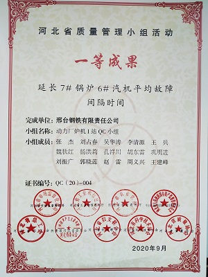 今年5月份邢鋼上報(bào)篩選出的10個質(zhì)量科技成果,參加了9月份河北省市場監(jiān)管局、省工信廳、省農(nóng)業(yè)農(nóng)村廳、省國資委、省總工會、省團(tuán)省委、省婦聯(lián)、省科協(xié)和省質(zhì)協(xié)等9個單位聯(lián)合組織的成果交流會發(fā)布比賽,由專家評委當(dāng)場打分確定比賽成績,最終認(rèn)定了各參賽選手獲獎等級,日前通過冀質(zhì)協(xié)字〔2020〕20 號《關(guān)于印發(fā)2020年河北省質(zhì)量管理小組活動質(zhì)量科技成果及優(yōu)秀企業(yè)、卓越領(lǐng)導(dǎo)者、優(yōu)秀推進(jìn)者名單的通知》文件中公布了質(zhì)量成果獲獎名單,并頒發(fā)了證書。