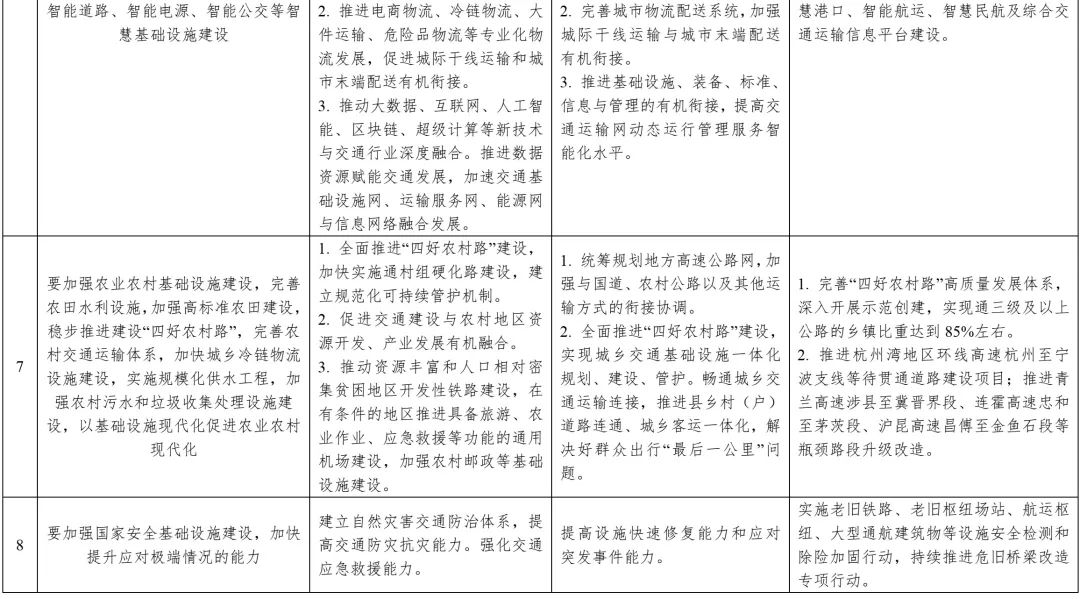 中央財(cái)經(jīng)委員會第十一次會議要求內(nèi)容與中共中央、國務(wù)院印發(fā)的《交通強(qiáng)國建設(shè)綱要》《國家綜合立體交通網(wǎng)規(guī)劃綱要》《“十四五”現(xiàn)代綜合交通運(yùn)輸體系發(fā)展規(guī)劃》等政策文件一脈相承,并有所側(cè)重,強(qiáng)化了交通、能源、水利、城鎮(zhèn)和科技等基礎(chǔ)設(shè)施在國內(nèi)國際雙循環(huán)相互促進(jìn)過程中的重要紐帶作用和產(chǎn)業(yè)鏈供應(yīng)鏈安全穩(wěn)定的保障基石作用,對構(gòu)建現(xiàn)代化基礎(chǔ)設(shè)施體系、推動經(jīng)濟(jì)高質(zhì)量發(fā)展具有重要指導(dǎo)意義。同時,兼顧了有序推進(jìn)地下綜合管廊建設(shè),加強(qiáng)城市防洪排澇、污水和垃圾收集處理體系建設(shè),加強(qiáng)防災(zāi)減災(zāi)基礎(chǔ)設(shè)施、公共衛(wèi)生應(yīng)急設(shè)施和國家安全基礎(chǔ)設(shè)施建設(shè);推進(jìn)重點(diǎn)水源、灌區(qū)、蓄滯洪區(qū)建設(shè)和現(xiàn)代化改造等內(nèi)容。表1為中央財(cái)經(jīng)委員會第十一次會議基礎(chǔ)設(shè)施建設(shè)有關(guān)內(nèi)容與相關(guān)政策文件對照。