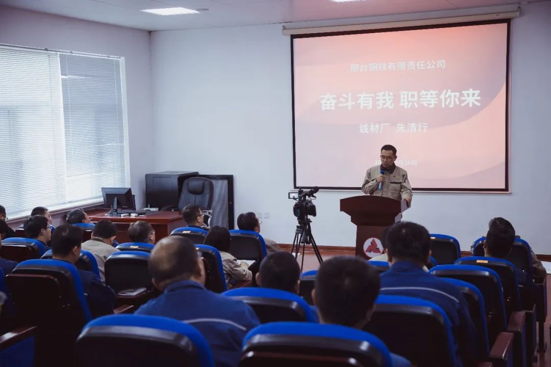 為加強(qiáng)員工隊(duì)伍建設(shè),提供人才晉升渠道,實(shí)施動(dòng)態(tài)儲(chǔ)備,4月16日,邢鋼組織開展了“奮斗有我,職等你來”主題演講會(huì),倡議廣大青年員工立足崗位比奉獻(xiàn),積極為公司發(fā)展諫言獻(xiàn)策,并激勵(lì)他們錘煉品德、勇于創(chuàng)新、實(shí)學(xué)實(shí)干,和公司一起成長,成為邢鋼事業(yè)發(fā)展的中堅(jiān)力量。公司董事長兼黨委書記張育明等公司領(lǐng)導(dǎo)及各單位主管領(lǐng)導(dǎo)參與了本次活動(dòng)。
