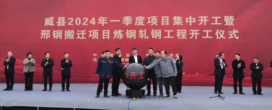 On February 18th, the groundbreaking ceremony for the Steelmaking and Rolling Engineering of Xingtai Steel's transformation, upgrading, and relocation renovation project was held. This event represents another milestone in the main construction project following the commencement of the Plant Front Area Project on January 16th. The Secretary of the Wei County Party Committee, Cui Yaopeng, the Chairman of Xingtai Iron and Steel Co., Ltd., Zhang Yuming, and the Deputy General Manager of China 20th Metallurgical Construction Co., Ltd., Zhang Shiyan, attended the ceremony and delivered speeches respectively. The groundbreaking ceremony was conducted in conjunction with Wei County's first-quarter project kickoff for 2024, which involved a total of 28 projects with a combined investment of 9.72 billion yuan.