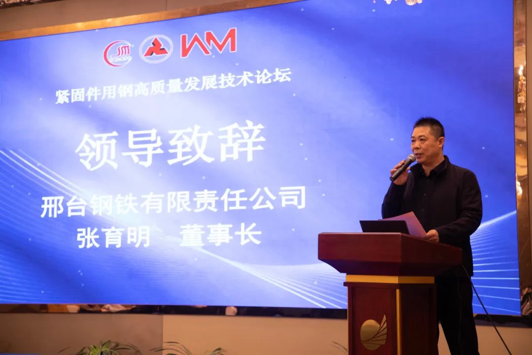 邢鋼公司黨委書(shū)記、董事長(zhǎng)張育明致辭,他表示,此次論壇是共商緊固件用鋼高質(zhì)量發(fā)展,緊固件產(chǎn)業(yè)鏈上下游企業(yè)締結(jié)友誼、協(xié)商合作、謀劃共贏的盛會(huì)。邢鋼能夠?yàn)楸敬握搲峁┲С?,倍感榮幸。