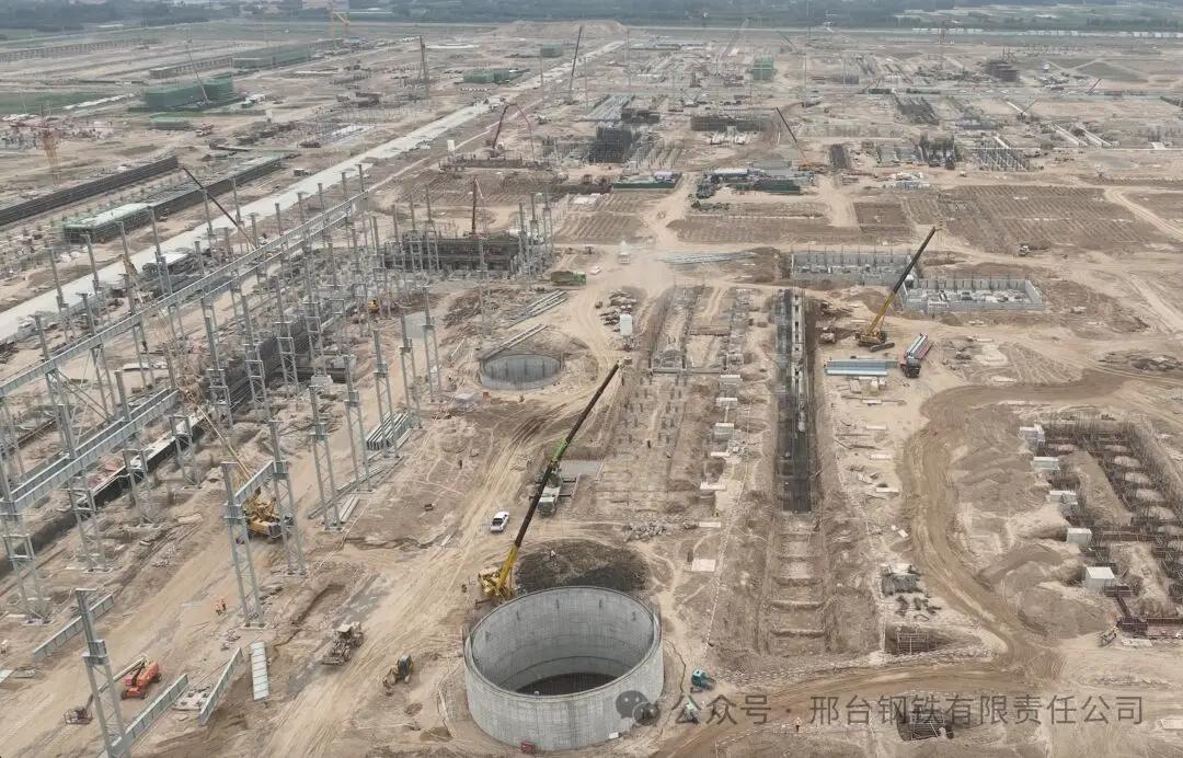 在項目地煉鋼區(qū)域實地考察中,公司黨委書記、董事長張育明在施工現(xiàn)場向隨行的各位領導介紹了新項目施工建設進展情況和公司未來的發(fā)展規(guī)劃。張育明董事長介紹,轉型升級搬遷改造項目,屬于河北省“十四五”規(guī)劃重大項目中制造業(yè)現(xiàn)代化水平提升重大工程。目前,正快速推進,制氧、煉鐵、煉鋼、軋鋼、機修區(qū)域部分廠房鋼結構和設備已全面進入吊裝、安裝階段。邢鋼有信心、也有能力要把這一項目做成國際標桿、行業(yè)典范的精品工程。