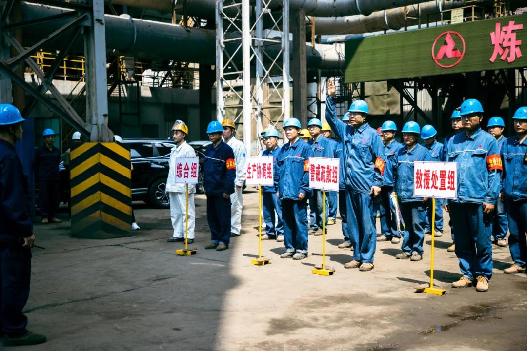 隨后,參會(huì)人員一起現(xiàn)場(chǎng)觀摩了邢鋼高溫熔融金屬爆噴事故現(xiàn)場(chǎng)應(yīng)急處置演練。本次演練,模擬煉鋼廠(chǎng)加料跨天車(chē)向2#轉(zhuǎn)爐加廢鋼時(shí)發(fā)生爆噴為背景,演示了事故上報(bào)、安全疏散、預(yù)案啟動(dòng)、現(xiàn)場(chǎng)搶險(xiǎn)、應(yīng)急救援等環(huán)節(jié)。