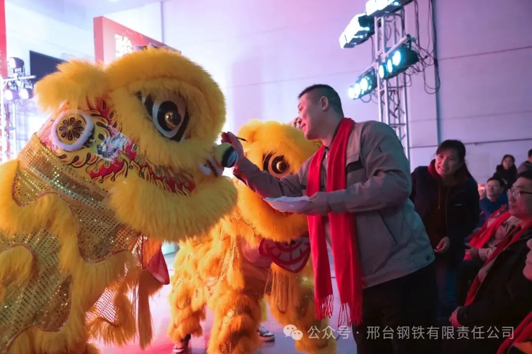 聯(lián)歡會(huì)在邢鋼搬遷項(xiàng)目指揮部的獅鼓表演《盛世歡歌》中拉開帷幕,張育明董事長為瑞獅點(diǎn)睛,預(yù)示著為新邢鋼帶來蓬勃朝氣與吉慶福運(yùn)!