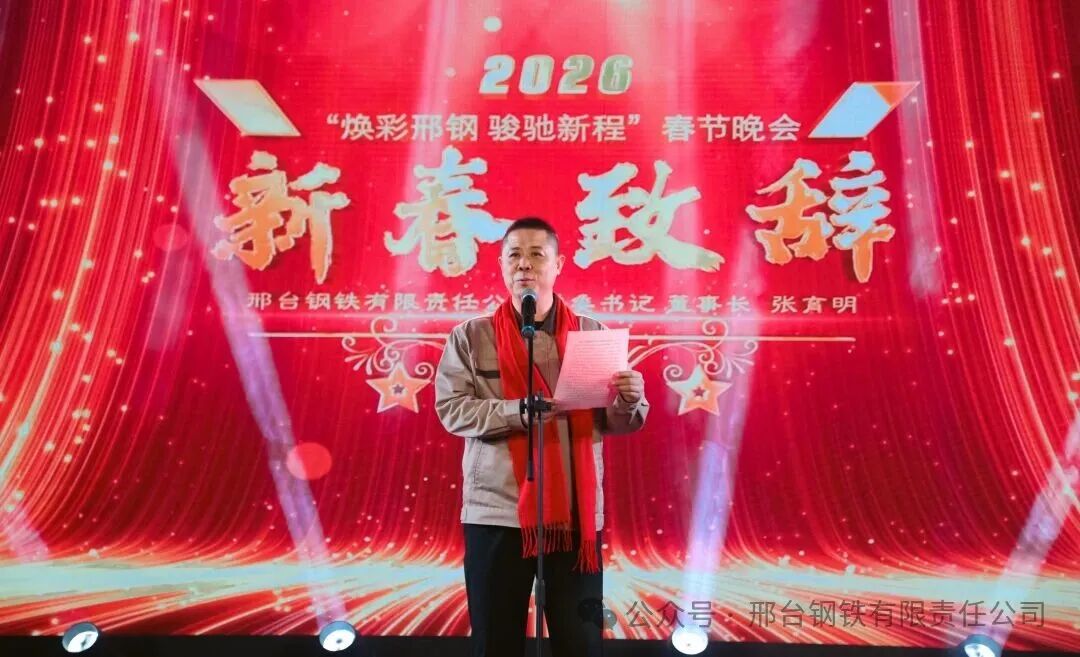 新征程,新目標(biāo),新跨越。2月6日,公司在會(huì)議中心舉辦“煥彩邢鋼,駿馳新程”2026年新春聯(lián)歡會(huì)。公司黨委書記、董事長張育明攜公司全體中高層領(lǐng)導(dǎo)與2025年受表彰的先進(jìn)個(gè)人、員工代表歡聚一堂,共話邢鋼大業(yè),喜迎丙午年新春。